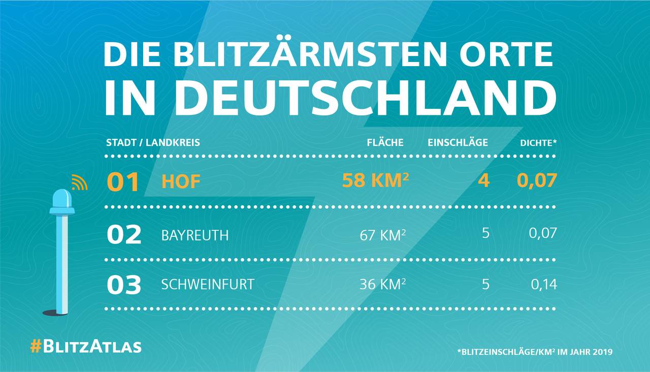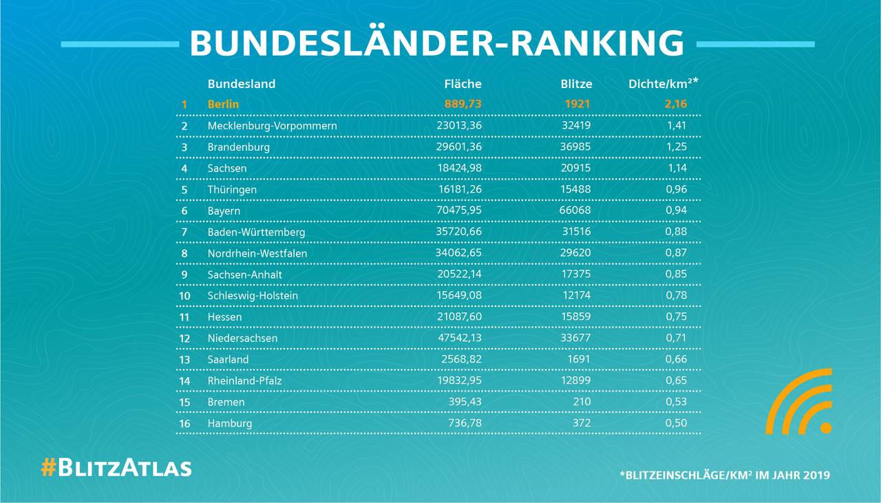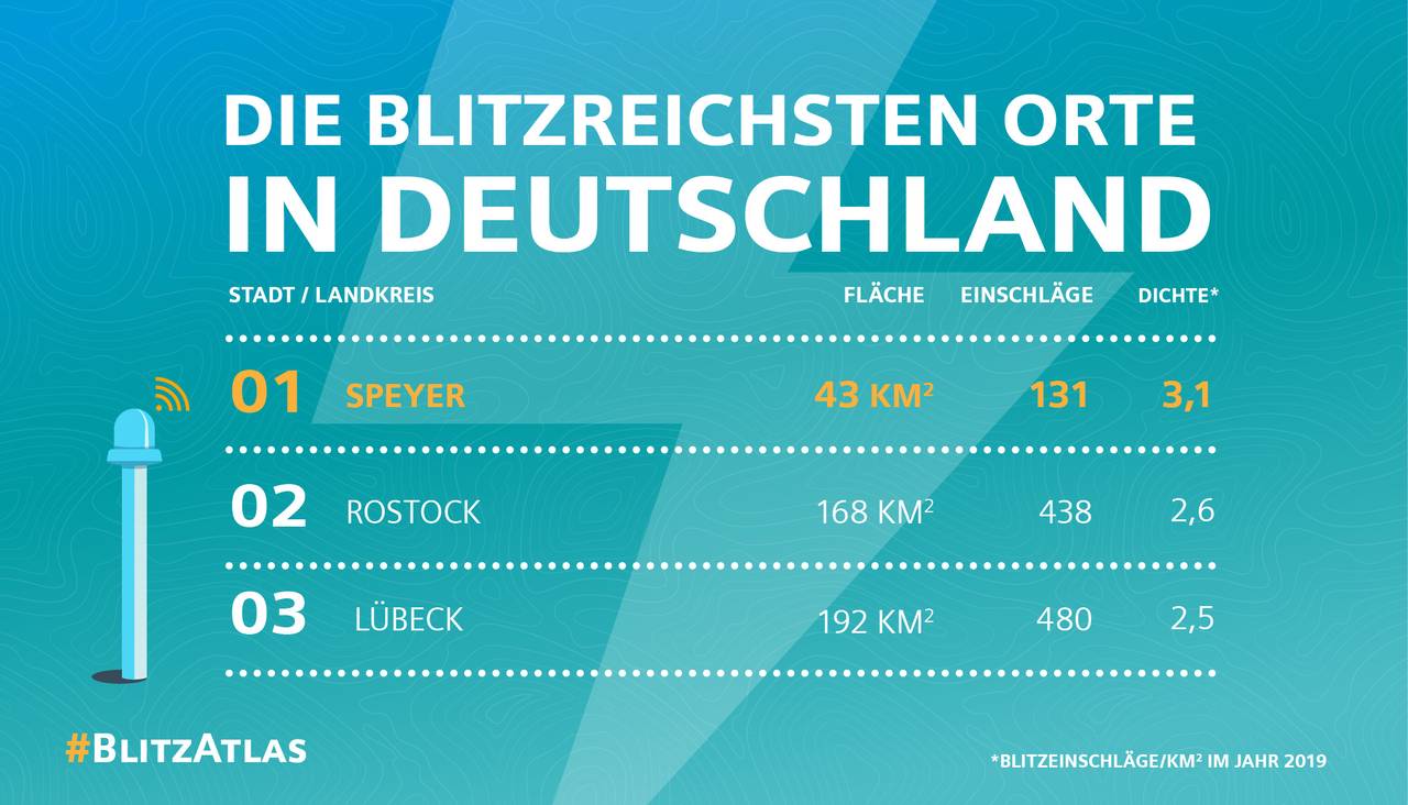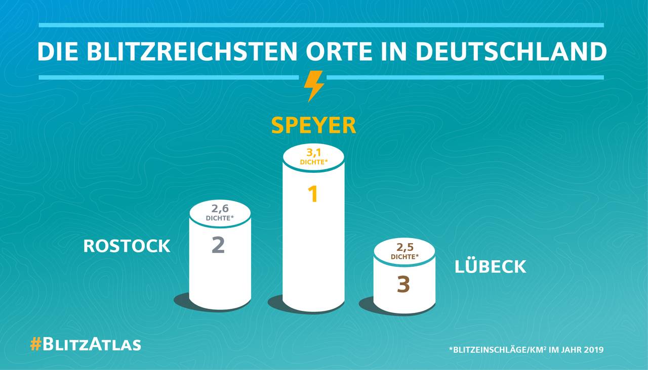 Im bundesweiten Vergleich ist der Kreis Wesel damit im Mittelfeld. Fast doppelt so oft schlug der Blitz im Kreis Minden-Lübbecke ein: 1.670 mal, das ist der höchste Wert in Deutschland. 2019 war insgesamt relativ blitzarm. Der Grund ist das trockene Wetter - Blitze brauchen Hitze und Feuchtigkeit. Der Blitz-Atlas wird jedes Jahr von Siemens herausgegeben.