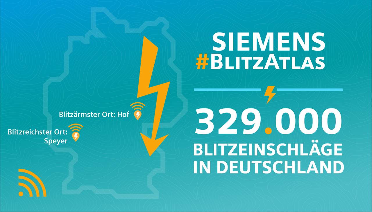 Seit 1991 registriert der Blitz-Informationsdienst von Siemens Blitzeinschläge an 160 Messstationen in Deutschland und Europa. Für den Blitz-Atlas hat das Unternehmen das Blitzgeschehen 2019 in Infografiken aufbereitet. (Quelle für alle Grafiken: Siemens)