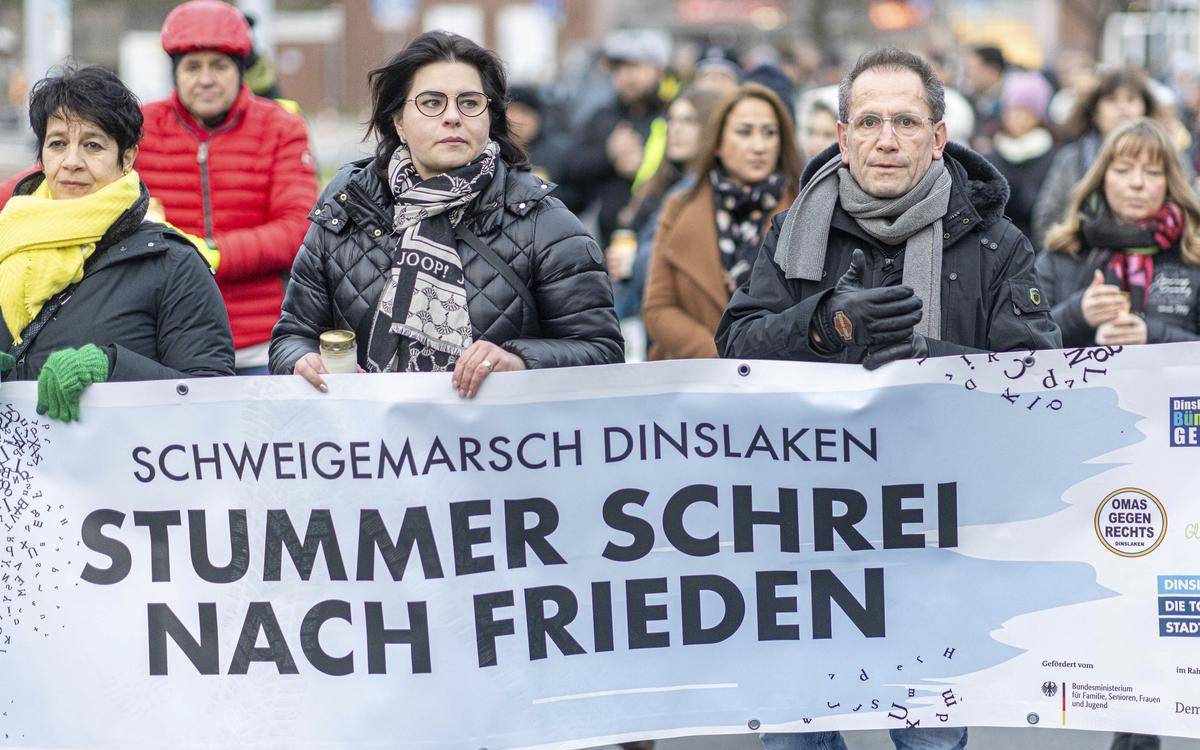 In Dinslaken sind am Wochenende 250 Menschen zu einem Schweigemarsch zusammen gekommen. Hintergrund ist der Krieg im Nahen Osten nach dem Angriff der Hamas vor zwei Monaten auf Israelische Zivilisten. Aufgerufen hatten der Verein GleichGut Dinslaken zusammen mit den Omas gegen Rechts und dem Dinslakener Bündnis gegen Rechts. Banner waren von den Orgabisatoren verboten. Es solle um einen Friendensaufruf gehen. Einige Teilnehmer empfanden dies als Maulkorb, schreibt die NRZ.