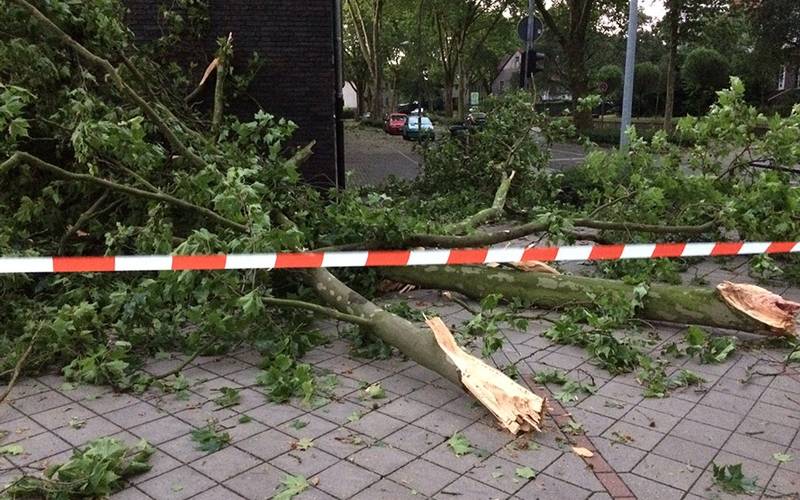 Teils heftige Sturmböen und Gewitter haben am Nachmittag vor allem in Dinslaken, Wesel und Schermbeck Schäden angerichtet. Die Feuerwehr meldet kreisweit 37 Einsätze. Die meisten Schäden gab es in Dinslaken in der Stadtmitte und in Hiesfeld. Herausgebrochene Äste und umgestürzte Bäume versperrten Straßen, Rad- und Wanderwege. In einigen Kellern stand Wasser. Gegen 22 Uhr waren lauit Feuerwehr alle Einsätze abgearbeitet.