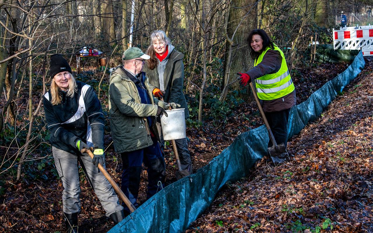Im Kreis Wesel beginnt die Krötenwanderung in diesem Jahr wegen des milden Wetters schon früh. An der B8 in Dinslaken hat der NABU schon den Schutz-Zaun errichtet.