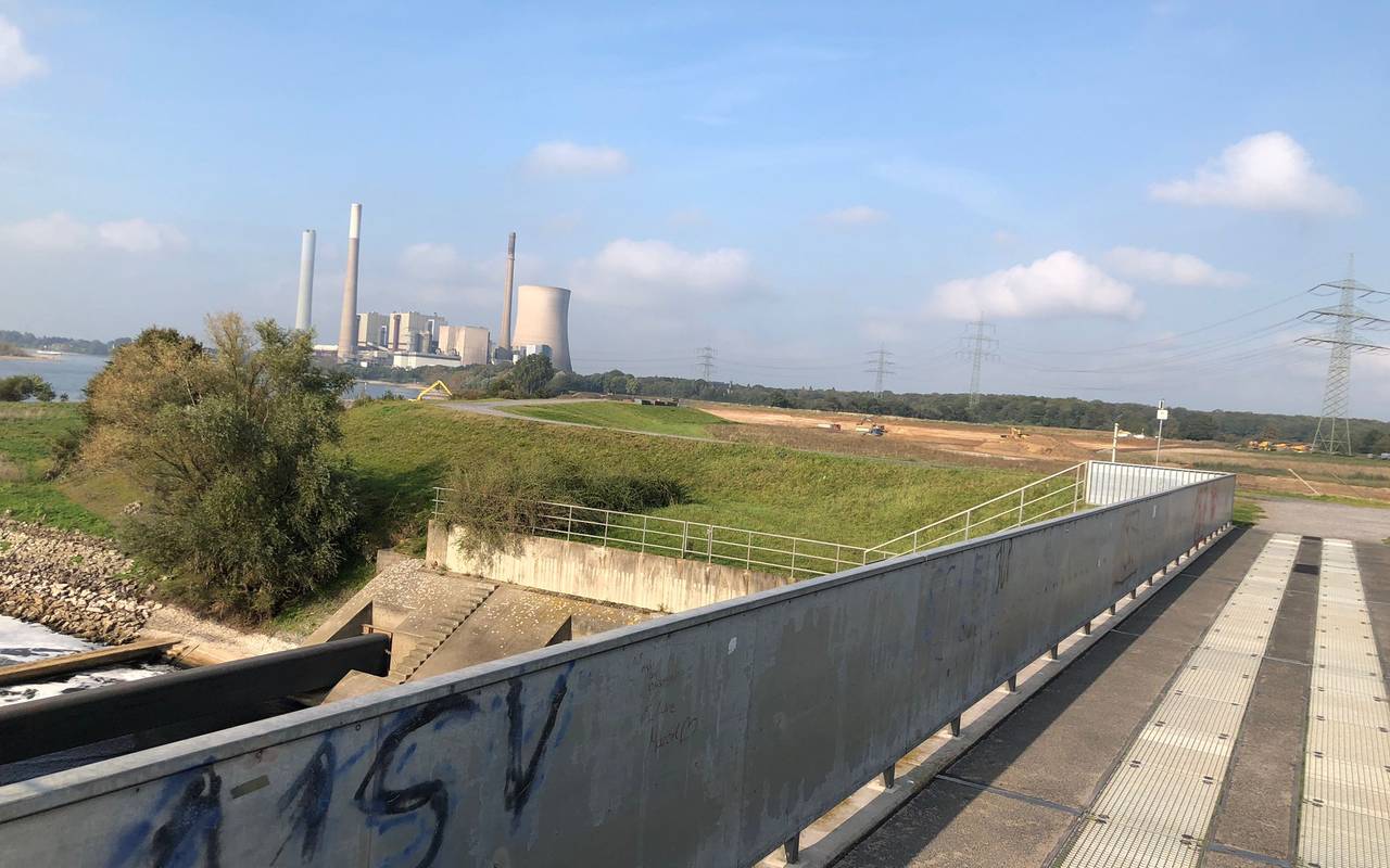 In Dinslaken gibt es jetzt nochmal ordentlich Baustellenverkehr rund um die Emscher-Mündung. Hier läuft aktuell der letzte Bauabschnitt, bei dem jede Menge Bodenmasse abtransportiert werden muss. Die Emscher wird 500 Meter Richtung Voerde verlegt. Dabei entsteht eine große neue Auenfläche - ein Paradies für Tiere und Pflanzen. Außerdem wird der Übergang in den Rhein fischfreundlicher umgebaut. Die Öffnung des Deichs ist im Spätsommer geplant.