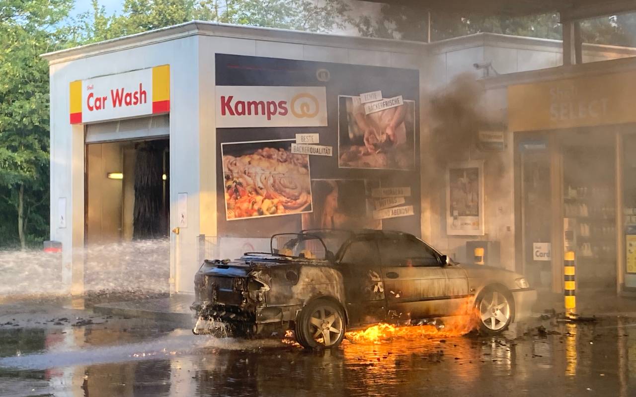 Das hätte übel enden können: An einer Tankstelle in Kamp-Lintfort brennt plötzlich ein Auto. Der Fahrer handelt geistesgegenwärtig und verhindert Schlimmeres.