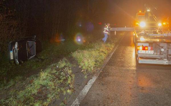 Auto kommt in Kamp-Lintfort von Autobahnauffahrt ab