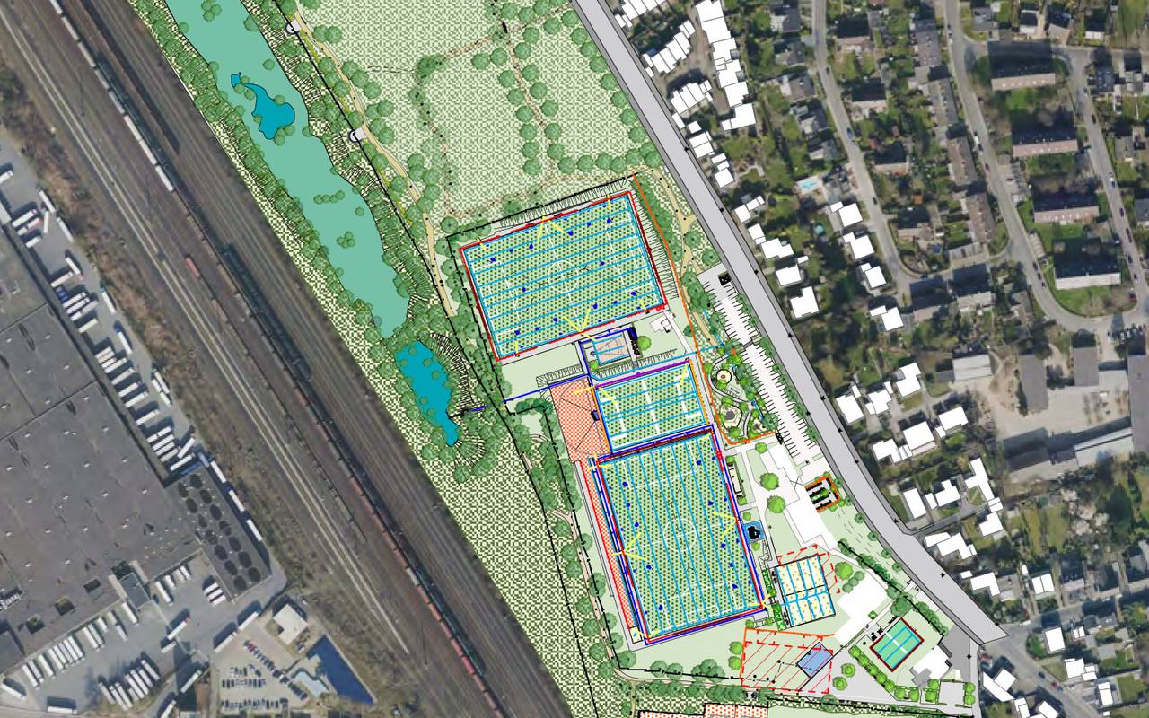 Zum Gesamtkonzept gehört die Sanierung der Turnhalle. Auf der Sportanlage gibt es nach der Sanierung zwei Großspielfelder und ein Jugendspielfeld mit Kunstrasen. Leichtathleten steht dann eine 110-Meter-Laufbahn, eine Weitsprung-, Hochsprung und Kugelstoßanlage zur Verfügung. Außerdem wird es für Hobbysportler die Möglichkeit geben, auf Waldwegen um die Sportanlage zu laufen. Neu geplant werden auch ein Beachfeld, eine Bouleanlage und ein Trendsportbereich (z. B. für Calisthenics). Die Fläche des Bolzplatzes wird als Veranstaltungsfläche aufgewertet - unter anderem für das Oktoberfest. Die Grünanlagen werden saniert und es wird eine autofreie Verbindung von der Rheinhausener zur Ruhrorter Straße geschaffen.