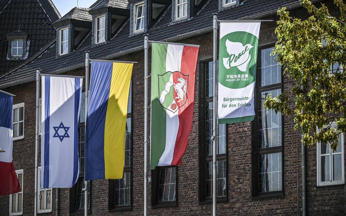 Heute wird weltweit an Rathäusern die "Mayors for Peace"-Flagge gehisst. Die Flagge für nukleare Abrüstung und Frieden weht bei uns unter anderem in Dinslaken.