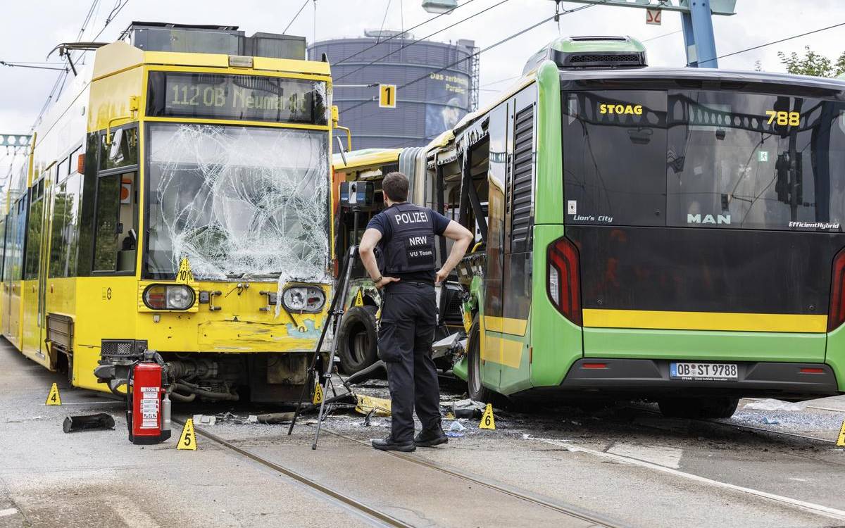 Bei einem schweren Unfall mit einem Linienbus und einer Straßenbahn in Oberhausen wurden zahlreiche Menschen verletzt, darunter auch einige Kinder. Die Hintergründe sind unklar.