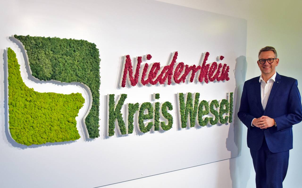 Der Kreis Wesel bekommt ein neues Logo. In dem quadratischen Design ist der Verlauf des Rheins abgebildet, der die zwei Kreishälften miteinander verbindet. Die beiden Rheinseiten sind in verschiedenen Grüntönen dargestellt. Das bekannte Wappen mit der weißen Kopfweide auf grünen Grund soll aber nicht ersetzt werden. Es soll durch das neue Logo ergänzt werden, um offizielle Dokumente der Kreisverwaltung zu kennzeichnen. Das Design ist hausintern entwickelt worden. Die Kosten dafür lagen wohl unter 10.000 Euro.