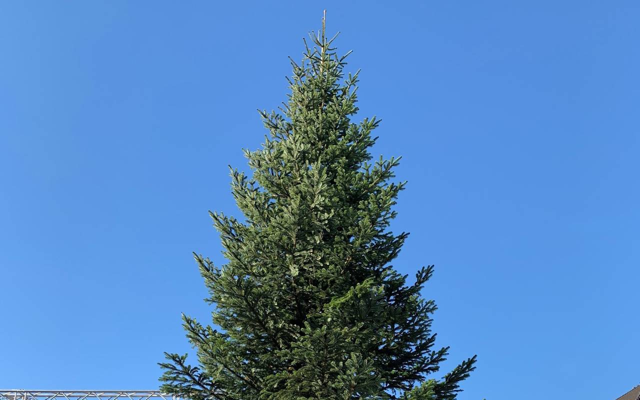 Der riesige Weihnachtsbaum vor der Neutor-Galerie wurde abgesägt. Dinslaken hat aber bereits einen Neuen für den Weihnachtsmarkt gefunden.