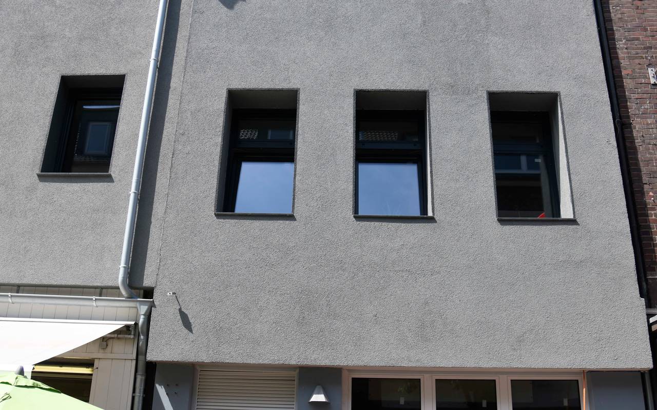 Für viele Dinslakener war das ein Schock: Statt schicker Stuckfassade mit Glockenspiel und Uhr war das Stammenhaus in der Innenstadt plötzlich schlicht betongrau.