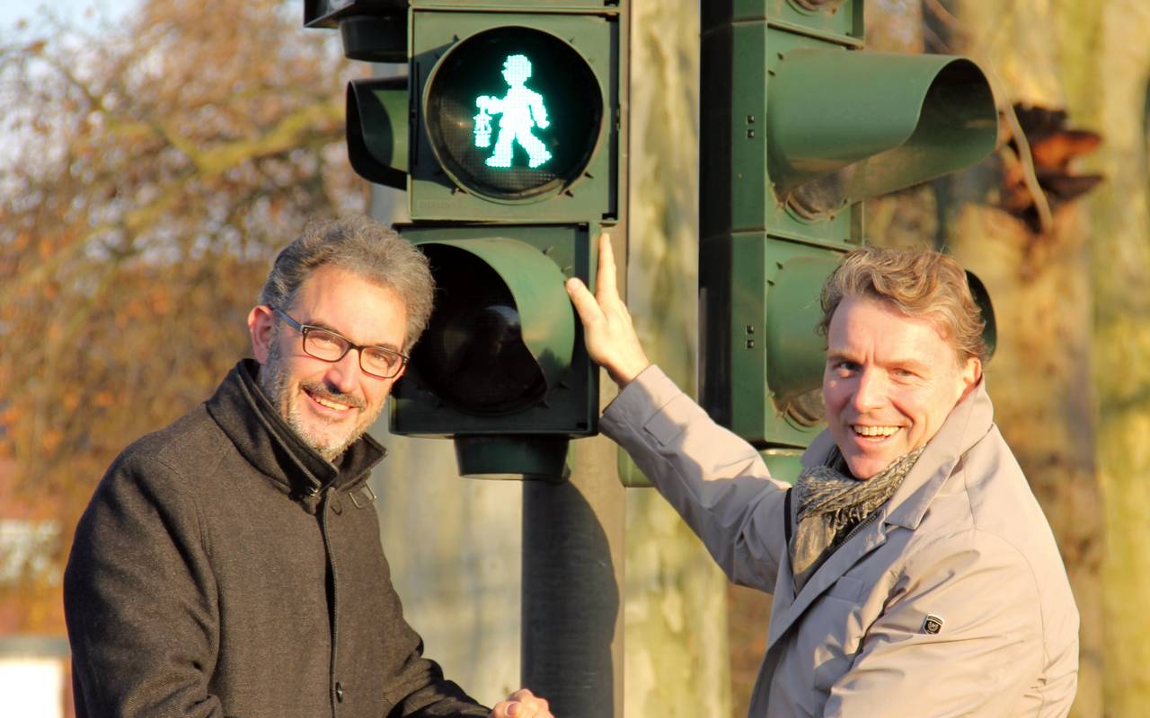 Nach Dinslaken hat jetzt auch Moers die erste Bergmannsampel aufgestellt. An der Kreuzung Römerstraße/Franz-Haniel-Straße im Stadtteil Hochstraß leuchtet jetzt ein Bergmann mit Grubenlampe grün oder rot. Auch in Kamp-Lintfort und Neukirchen-Vluyn sind die Kumpelampeln schon beschlossen, aber noch nicht aufgestellt. Wesel bekommt morgen nach jahrelangem Kampf seine Esel-Ampel.
