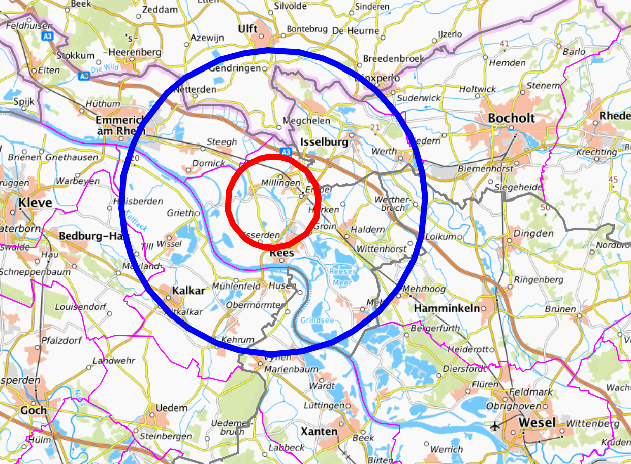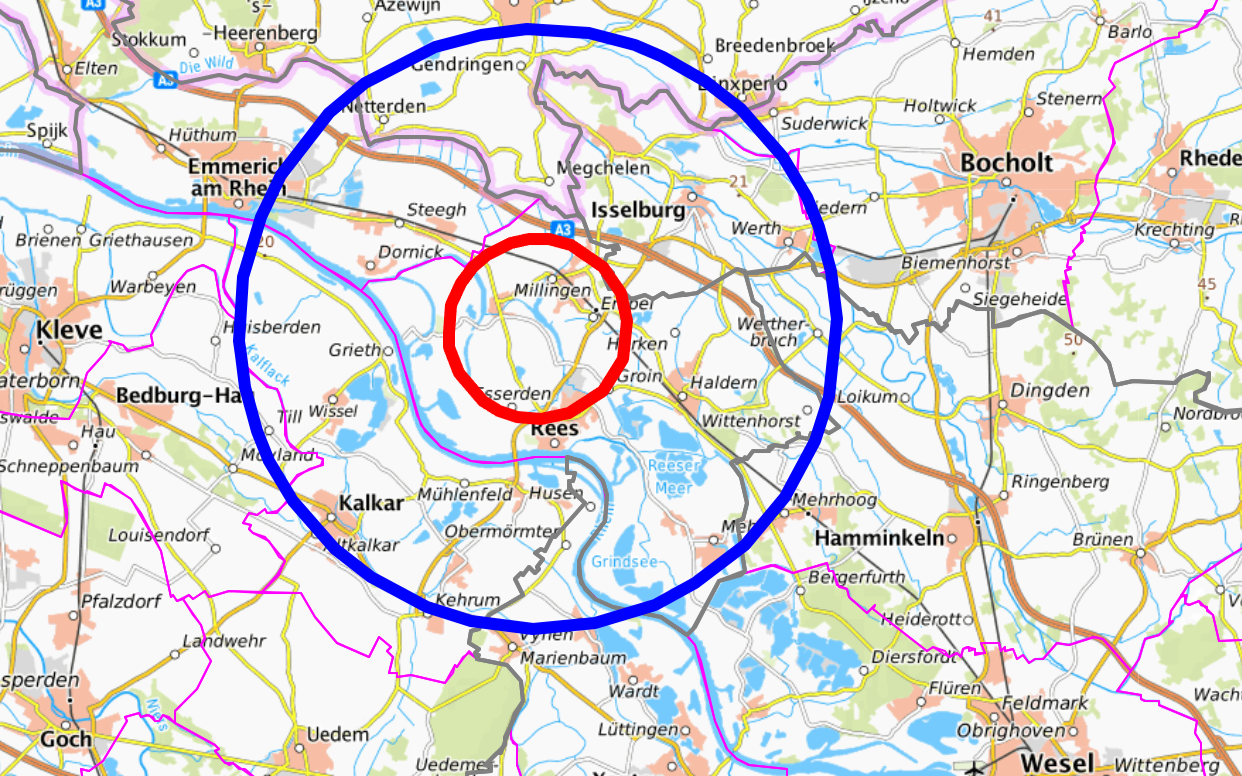 Die Überwachungszone um den betroffenen Betrib reicht bis in den Kreis Wesel - Teile von Hamminkeln und Xanten sind betroffen.