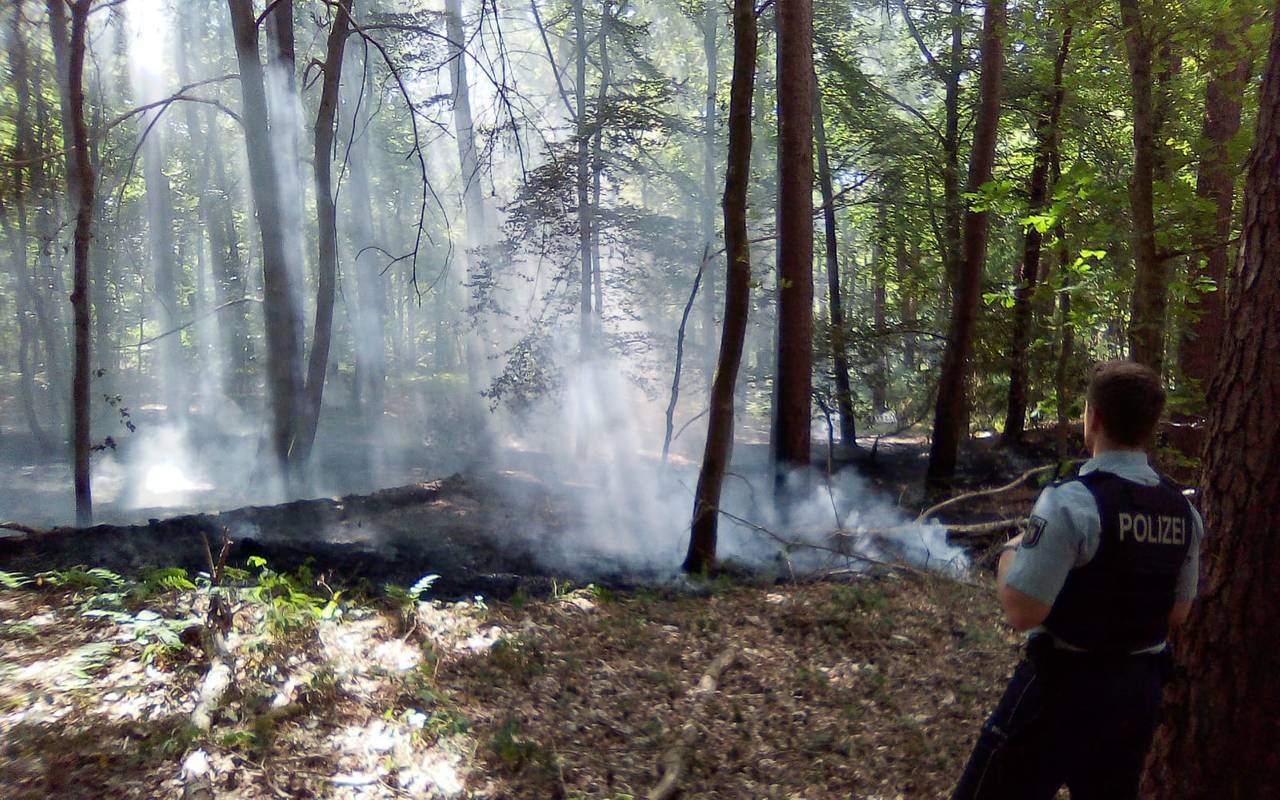 Ein Sportflugzeugpilot hatte eine Rauchsäule über dem Wald entdeckt. Die Feuerwehr suchte die Stelle unter anderem mit einer Drohne. Über 70 Feuerwehrleute waren im Einsatz.