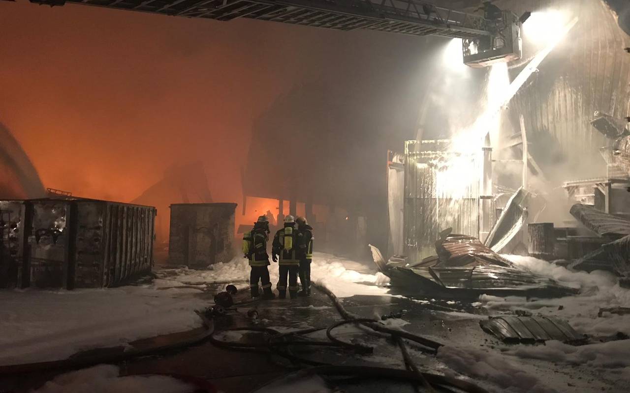 Nach dem Großbrand in Kamp-Lintfort konnten jetzt die Feuerwehrleute abgezogen werden, Glutnester werden weiter überwacht. Das Feuer war in der Nacht zu Freitag ausgebrochen.