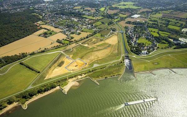 Die Emschermündung wird vom Dinslakener Stadtgebiet auf Voerder Stadtgebiet verlegt. Dort entsteht im Moment eine Art Treppe fürs Emscherwasser.