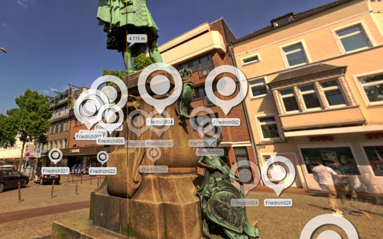 Fünf Denkmäler in Moers haben jetzt "digitale Zwillinge". Die Stadt hat die Denkmäler Ende Mai mit Lasertechnik per Drohne vermessen lassen. Etwa die Skulptur von Friedrich I am Neumarkt und das Kaiserdenkmal am Ostring. Jetzt liegen sie als sogenannte 3D-Punktwolken vor. Mit den digitalen Modellen sollen die Denkmäler millimetergenau reparieren werden können, wenn sie beschädigt werden - etwa durch Vandalismus oder die Witterung.
