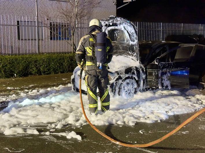 FW Hünxe: Pkw brennt in voller Ausdehnung