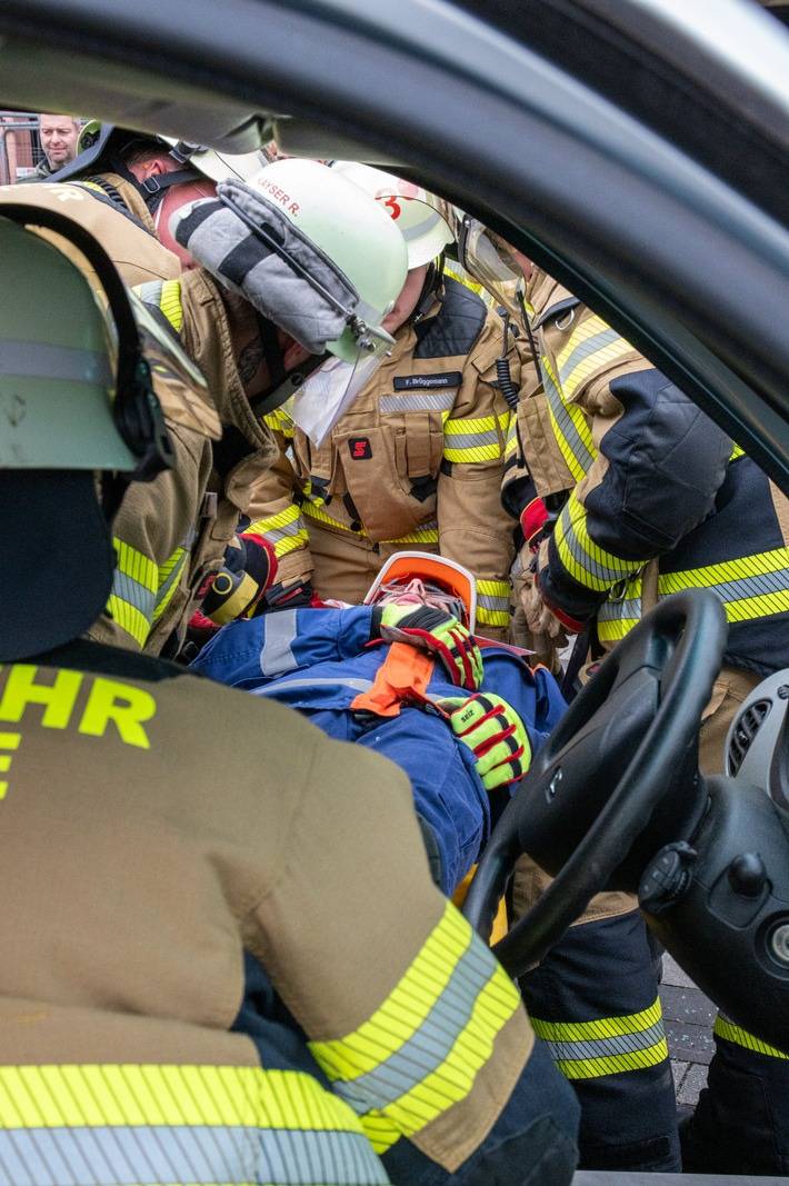 Die Einsatzkräfte der Einheit Spellen waren für die technische Rettung der Insassen des verunfallten PKW zuständig, diese waren zum Teil eingeklemmt. Auf Grund der komplexen Rettungsarbeiten wurde hier der Rüstwagen, mit seiner umfangreichen Beladung für die technische Hilfeleistung, eingesetzt.