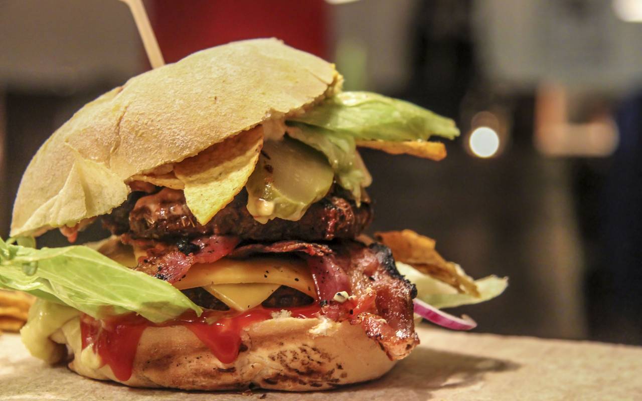 Hirschburger mit gegrillten Pilzen
