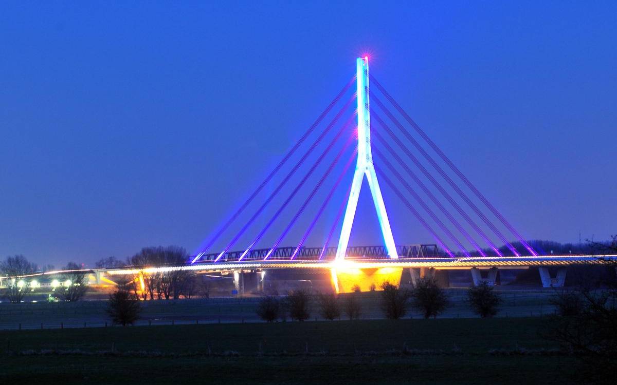 Ein Unbekannter in Wesel hat am Abend Polizei und Feuerwehr in Atem gehalten. Ein Zeuge hatte ihn auf dem Geländer der Rheinbrücke gesehen. Dann war der Mann verschwunden.