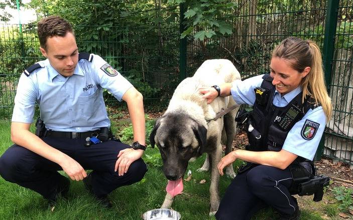 Ein Verkehrsteilnehmer entdeckte den Hund im Bereich der Römerstraße/Überführung zur A40 und hielt ihn so lange fest, bis die Polizei vor Ort war. Kleines Problem: Der Kangal war zu groß für den Streifenwagen, also machten die Beamten einen Spaziergang mit dem Hund - bis zur Wache an der Asberger Straße. Zwischendurch gab es eine kleine Trinkpause für den Kangal. Wie die Polizei berichtet, war unklar, wem der Hund gehört - deswegen wurde er zunächst ins Kamp-Lintforter Tierheim gebracht.