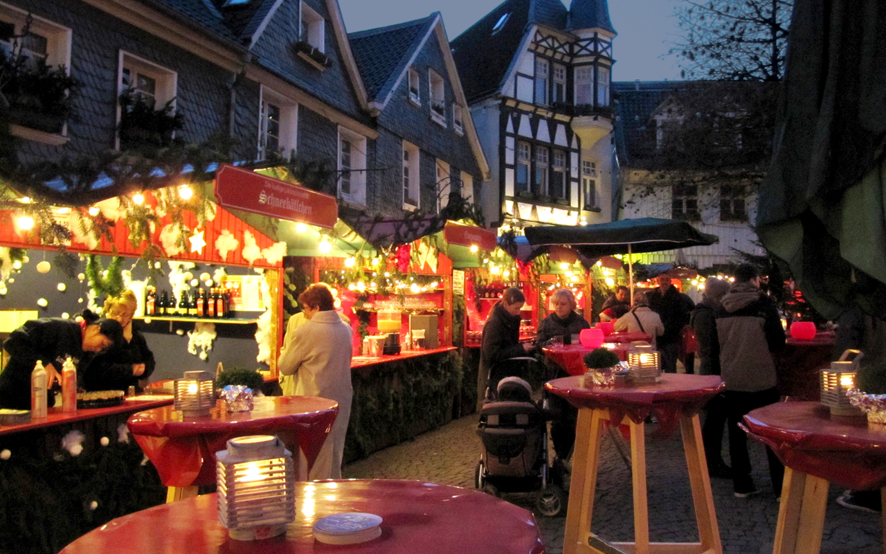 Monschau - Mitten in der Eifel ist die Chance außerdem hoch, den Weihnachtsmarkt in Monschau im Schnee zu erleben. Die Altstadt in Monschau hat mit ihren alten Fachwerkhäusern schon ohne Weihnachtsmarkt eine ganz tolle Atmosphäre. Mit all den Lichtern und Buden wird es aber noch mal eine ganze Schippe besser. Der Weihnachtsmarkt hat vom 29. November bis zum 22. Dezember nur an den Wochenenden geöffnet.