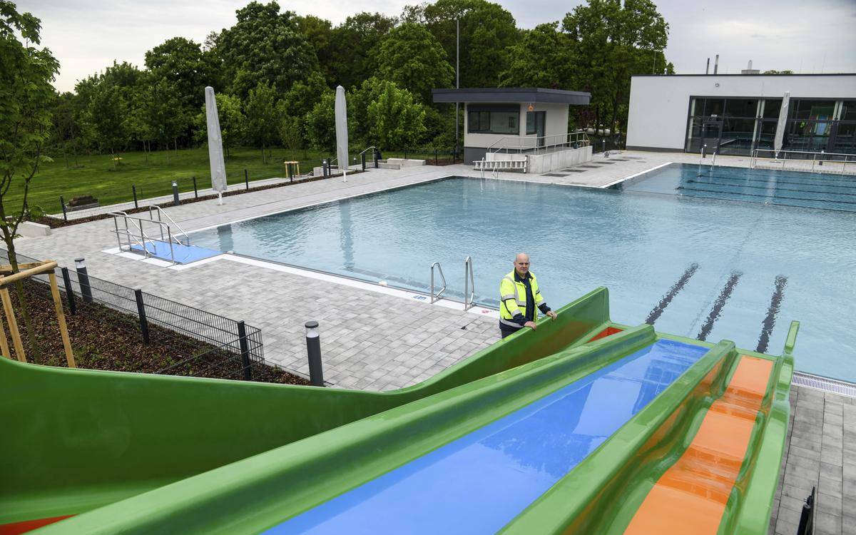 In Dinslaken ist der Millionen-Umbau am Dinamare beendet. Am Samstag feiert auch der neue Freibadbereich Eröffnung. Highlight ist ein 750-Quadratmeter-Becken mit Rutsche.