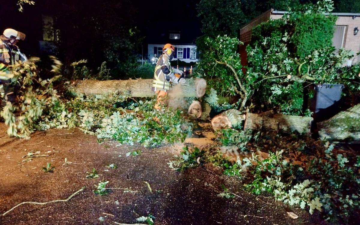 Bei dem Unwetter gestern hat ein umgestürzter Baum ein Hausdach in Hünxe-Drevenack beschädigt. Die Feuerwehr musste ausrücken und auch die Straße von dicken Ästen befreien.