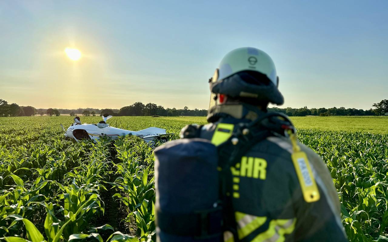 In Hünxe ging die Notlandung einen Ultraleichtflugzeugs noch glimpflich aus. Der Flieger landete gestern Abend auf einem Maisfeld. Beide Insassen blieben unverletzt.