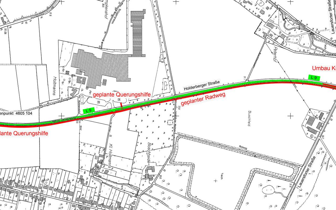 Über 5000 Unterschriften waren gesammelt worden, um die Holderberger Straße sicherer zu machen. 2014 war hier eine 15-Jährige gestorben, nachdem sie ein Auto erfasst und ein nachfolgendes überrollt hatte. Den Auftrag für den Radweg hat die Stadt Moers erteilt. Straßen NRW bleibt aber Eigentümer und übernimmt auch die Kosten.