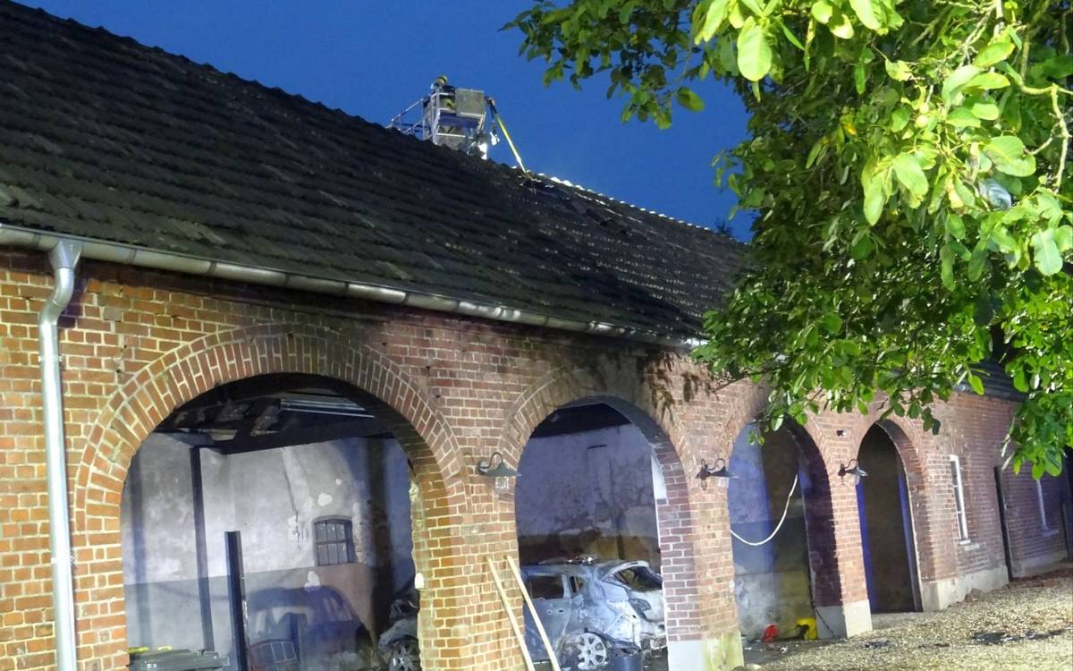 In Sonsbeck hat es am frühen Morgen auf einem Bauernhof gebrannt. Verletzt wurde zum Glück niemand. Die Feuerwehr geht aber von einem erheblichen Sachschaden aus. Offenbar war ein Auto, das in einer Scheune an der Schwarzen Straße stand, in Flammen geraten. Wie es dazu kam, muss noch ermittelt werden. Als die Feuerwehr eintraf, griff das Feuer schon auf das Dach über. Rund 80 Einsatzkräfte konnten aber eine Ausdehnung auf das gesamte Gebäude verhindern. Feuerwehren aus Sonsbeck, Kevelaer und Xanten waren rund zwei Stunden im Einsatz.