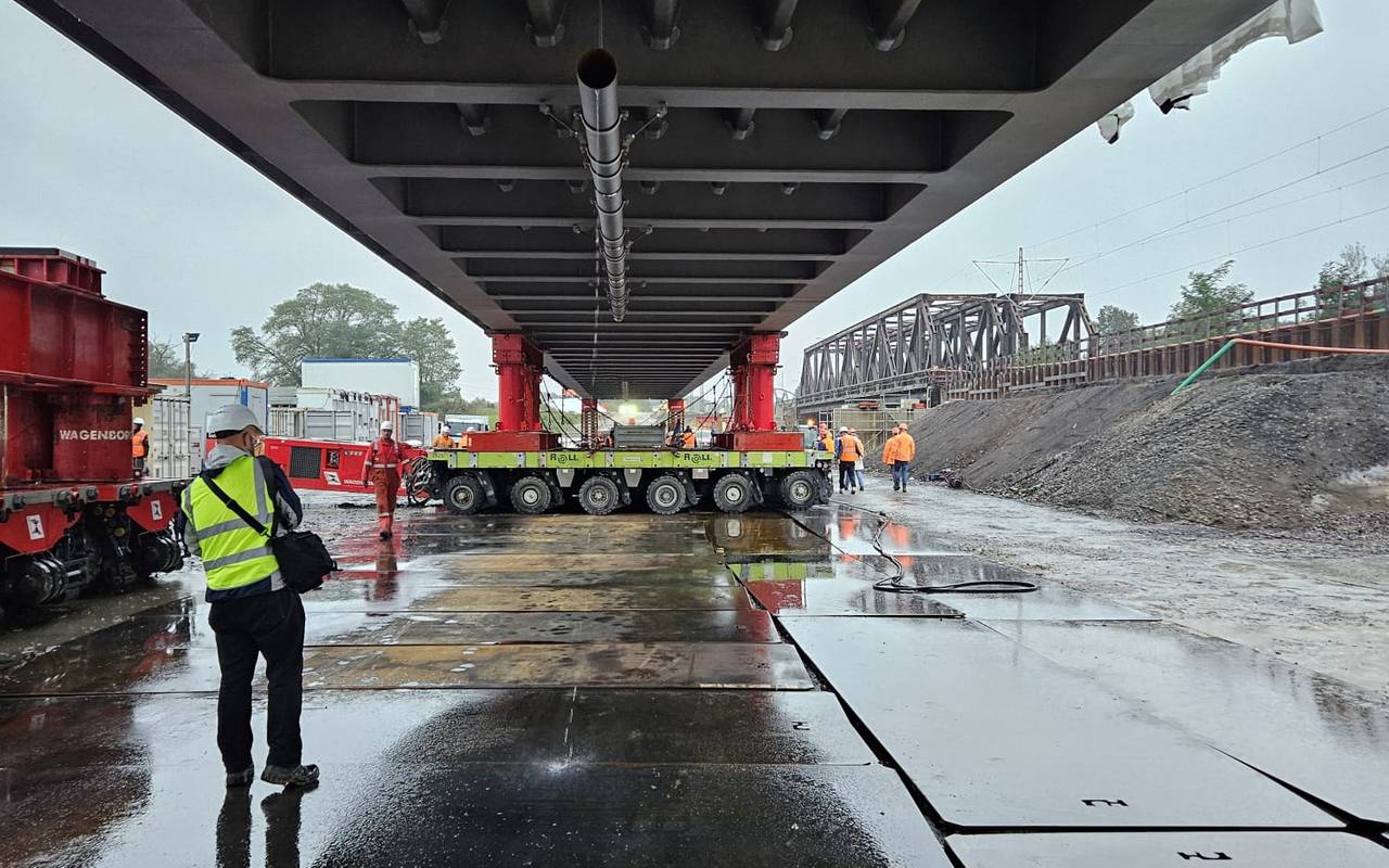 In Wesel wird die neue Lippe-Eisenbahnbrücke eingehoben