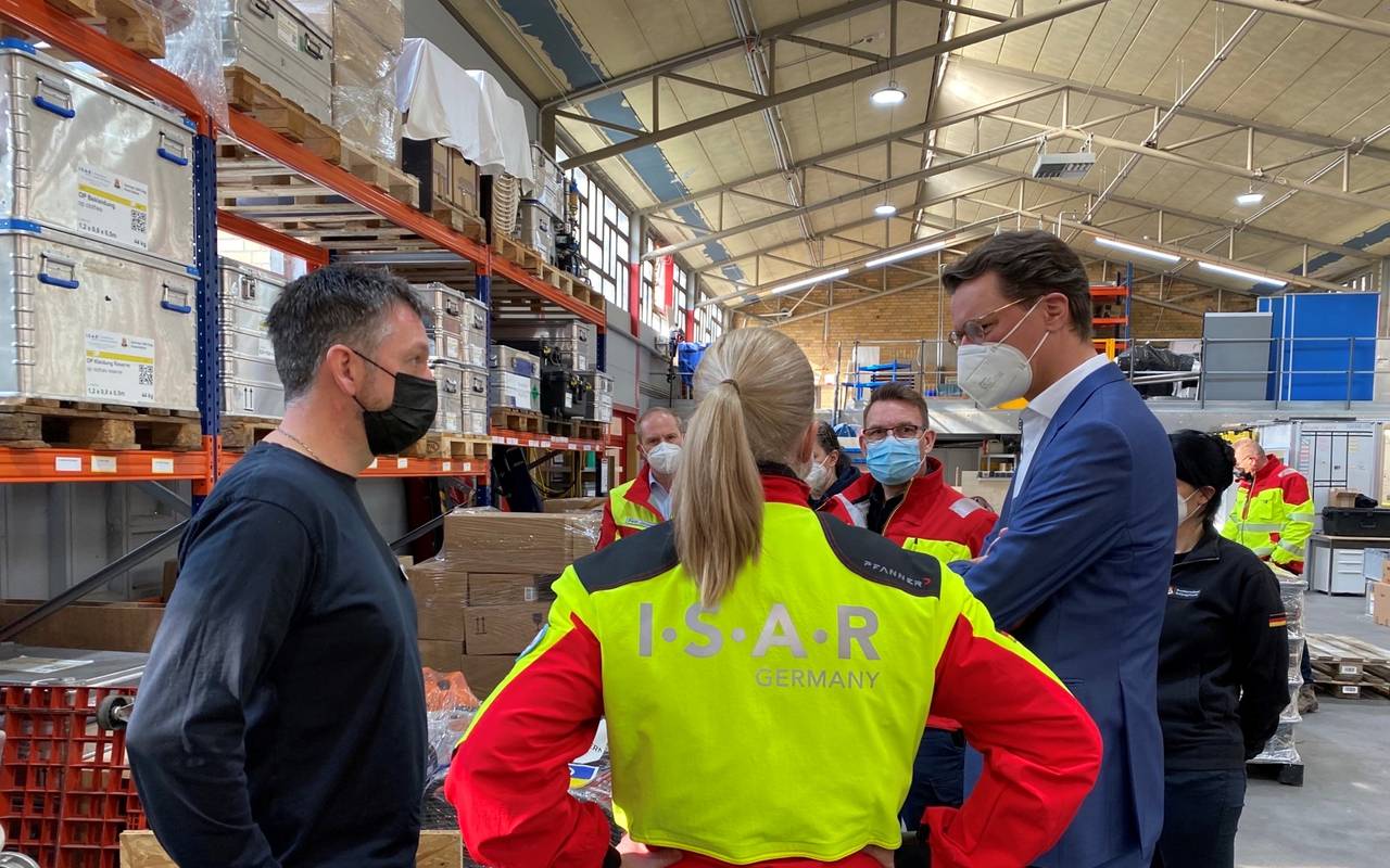 I.S.A.R. Germany und der BRH Bundesverband Rettungshunde e.V haben schon mehr als 60 Tonnen Hilfsgüter über die polnische Grenze geschafft. Als Anerkennung für die lebensrettende Arbeit hat heute auch NRW-Ministerpräsident Hendrik Wüst das ISAR-Gelände in Bruckhausen besucht. Die Transporte beinhalten unter anderem lebensrettende Medikamente, Jacken, Schlafsäcke sowie haltbare Lebensmittel.
