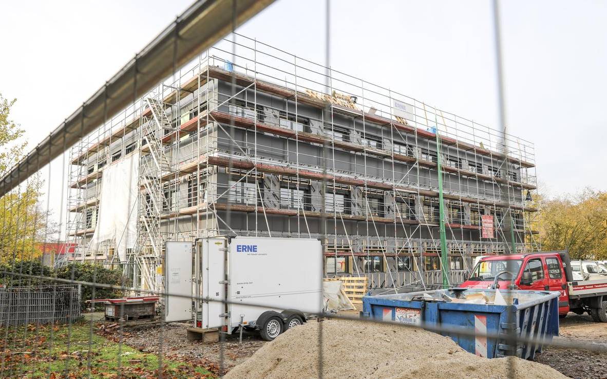 Die größte Schulbaustelle in Kamp-Lintfort schreitet quasi in Rekordzeit voran. Seit Oktober entsteht für fast fünf Millionen Euro ein Lernhaus für die Europaschule - mit drei Etagen und zwölf neuen Klassenräumen. Dank Modulbauweise ist der Großteil des Gebäudes schon fertig. Im Frühjahr sollen Schüler und Lehrer einziehen. Nötig war der Neubau wegen steigender Schülerzahlen.