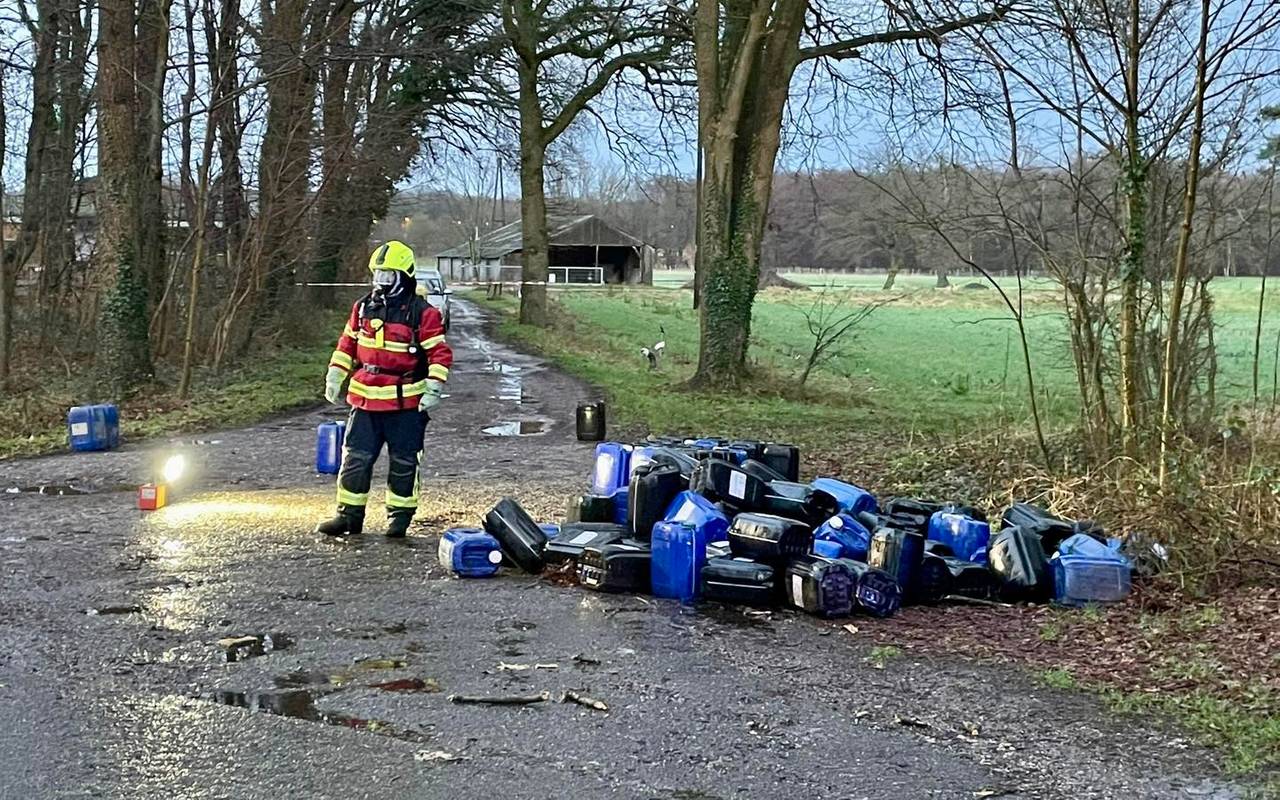 In Emmerich-Elten auf einem Feld sind über 50 Kanister mit unbekannten Flüssigkeiten gefunden worden. Die Feuerwehr hat die Chemikalien getestet und entsorgt.