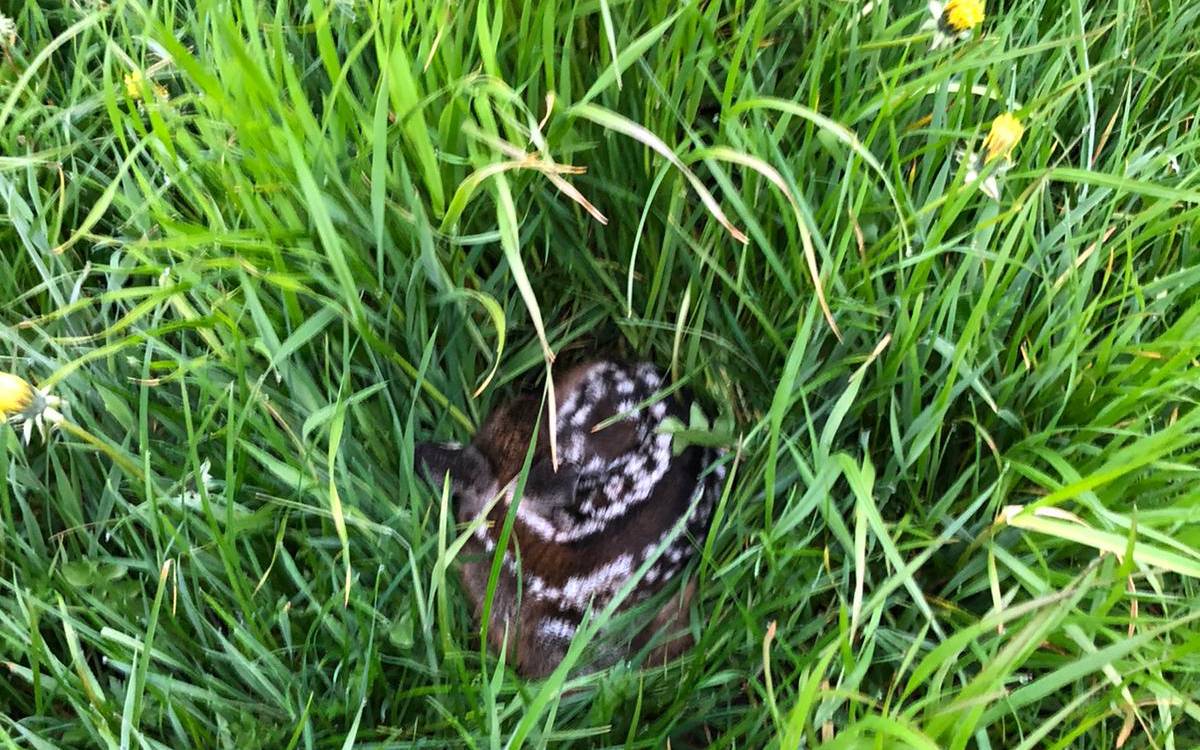 Ist es ein Kitz, wird es sofort in Sicherheit gebracht: Mit Handschuhen wird es in einen Karton gelegt und am Rande der Wiese abgestellt - bis die Wiese gemäht wurde. Danach wird es wieder freigelassen.