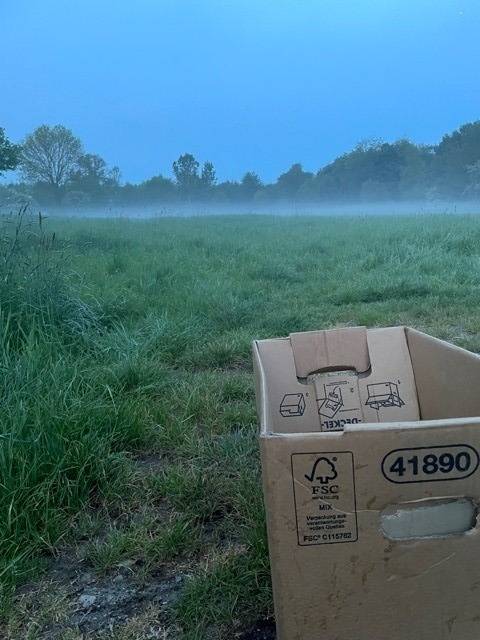 Morgens gegen 5 Uhr treffen sich die Teams der ehrenamtlichen Hamminkelner Kitzretter - ausgestattet mit Gummistiefeln, Gummihosen, Handschuhen und Kartons. Landwirte haben ihnen am Tag zuvor gesagt, welche Wiese sie mähen werden - und diese Wiese muss dann nach Babyrehen abgesucht werden. Früher musste man dafür mühsam Hektar um Hektar durchkämmen, seit drei Jahren helfen Drohnen mit Wärmebildkamera. Trotzdem sind die ehrenamtlichen Retter oft bis in den späten Vormittag unterwegs, je nachdem, wie viele Wiesen zur Mahd angemeldet wurden.