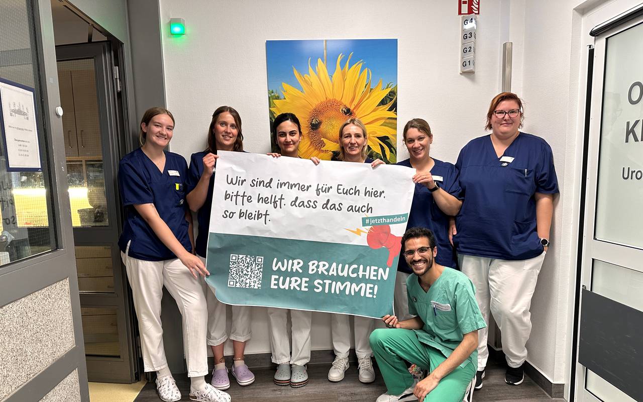 Die Krankenhäuser stehen mit dem Rücken zur Wand. Systembedingt können die Belegschaften aber nicht mal eben 48 Stunden streiken. Deshalb machen sie heute bundesweit auf ihre Situation aufmerksam. Per Unterschrift können sie die Forderungen unterstützen: www.DKGEV.de