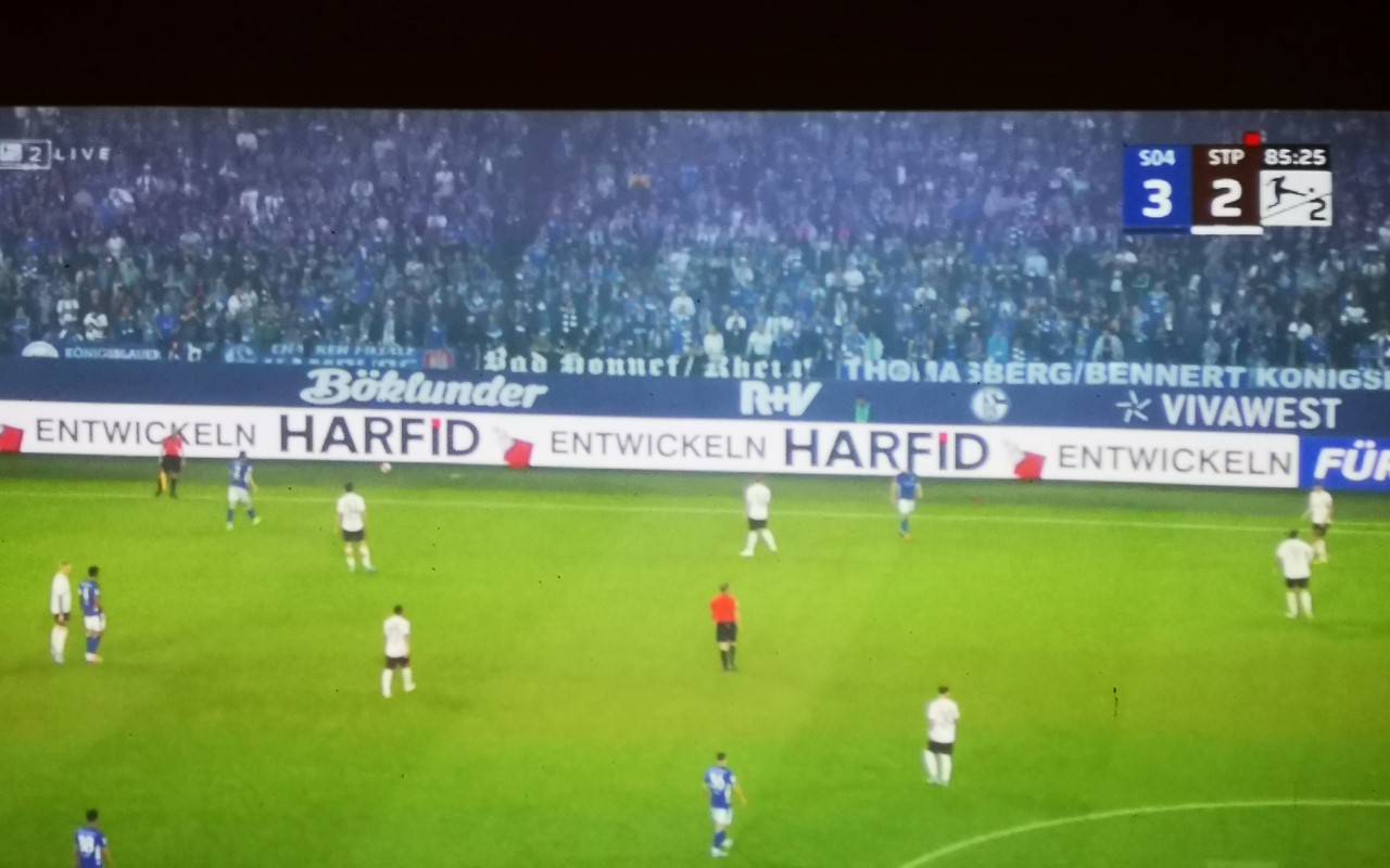 Blau-weißer Freudentaumel: Schalke 04 sichert sich mit einem 3 zu 2 gegen St.Pauli vorzeitig den Aufstieg in die Bundesliga. Typisch für Schalke: Ohne Drama ging es wieder nicht.