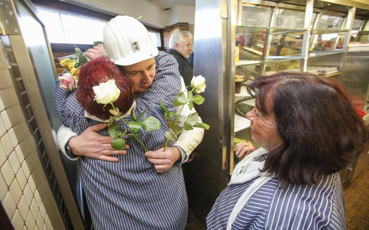 Kumpel verabschieden Kantinefrauen auf Zeche Prosper Haniel