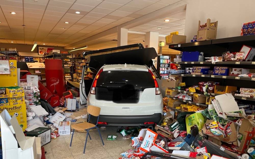 In Dingden ist eine Frau aus bisher ungeklärter Ursache in ein Geschäft gefahren. Glücklicherweise wurde niemand verletzt.