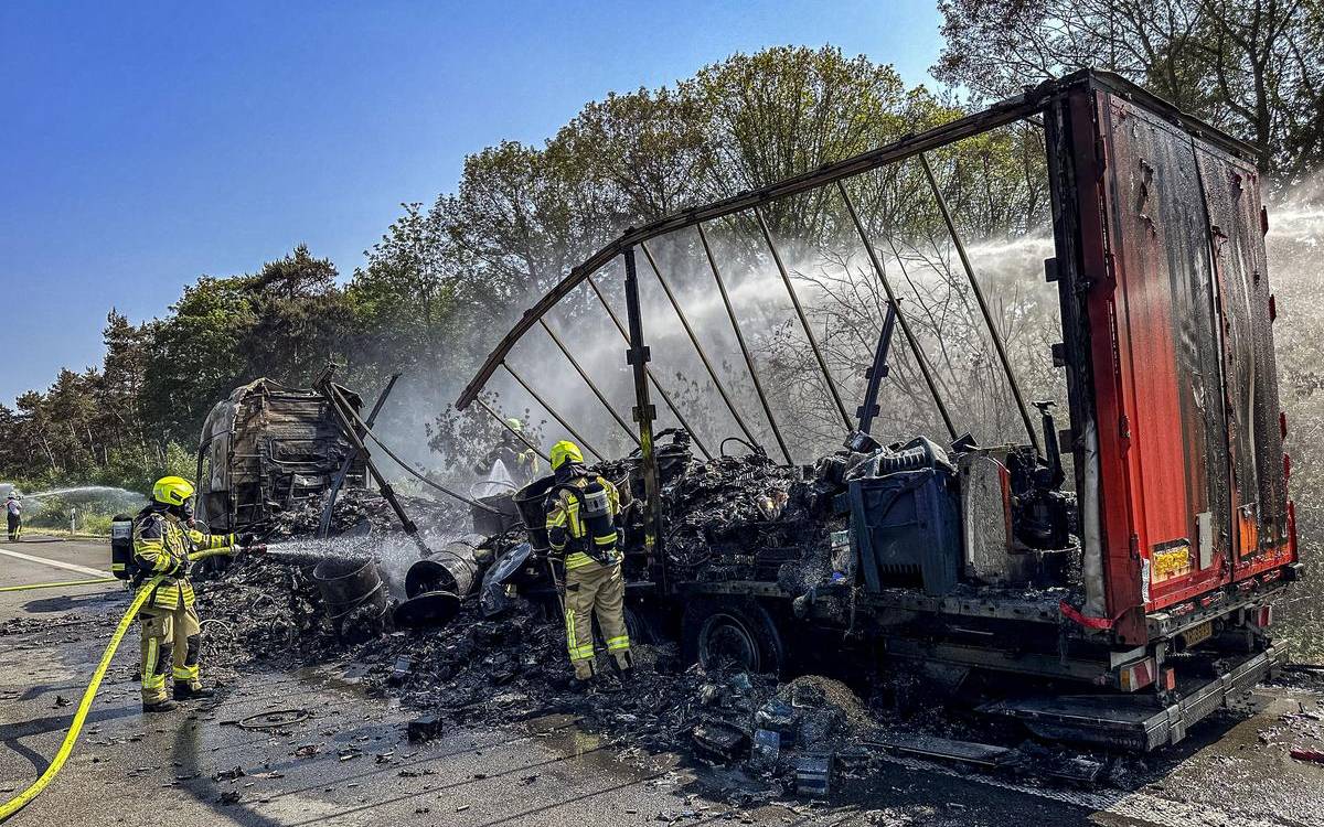 Die Bergungsarbeiten auf der A57 bei Alpen haben bis in die Nacht gedauert. Hier war gestern ein LKW in Flammen aufgegangen, der Lithium-Batterien geladen hatte. Der Fahrer hatte den Rauch laut Polizei zuvor bemerkt und konnte sich rechtzeitig retten. Es entwickelte sich schnell eine schwarze Rauchsäule. Deswegen wurde in Rheinberg und Kamp-Lintfort die NINA-Warn-App ausgelöst. Feuerwehreinheiten aus Alpen, Rheinberg, Moers, Sonsbeck, Xanten, Wesel und Krefeld waren mit rund 130 Einsatzkräften vor Ort. Unter anderem mussten sie für ausreichend Löschwasser sorgen.