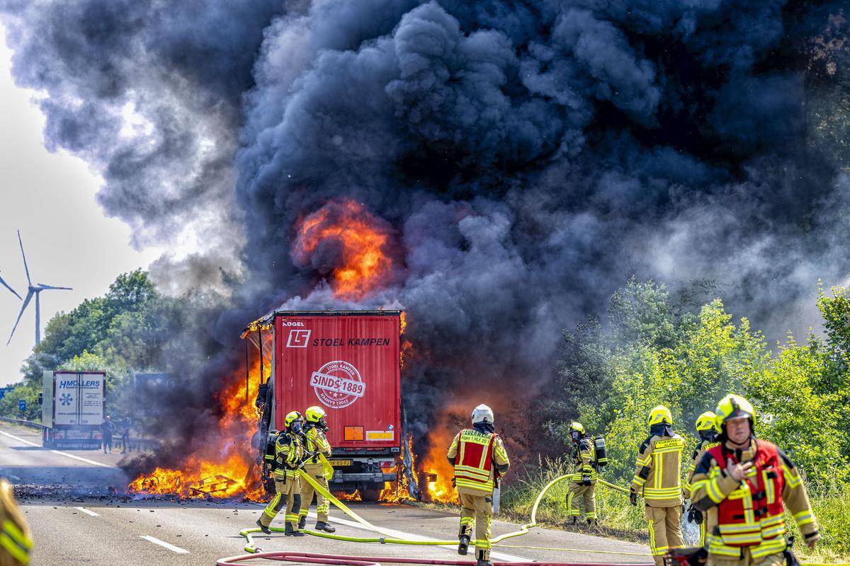 LKW-Brand auf A57 bei Alpen - Bergung bis in die Nacht