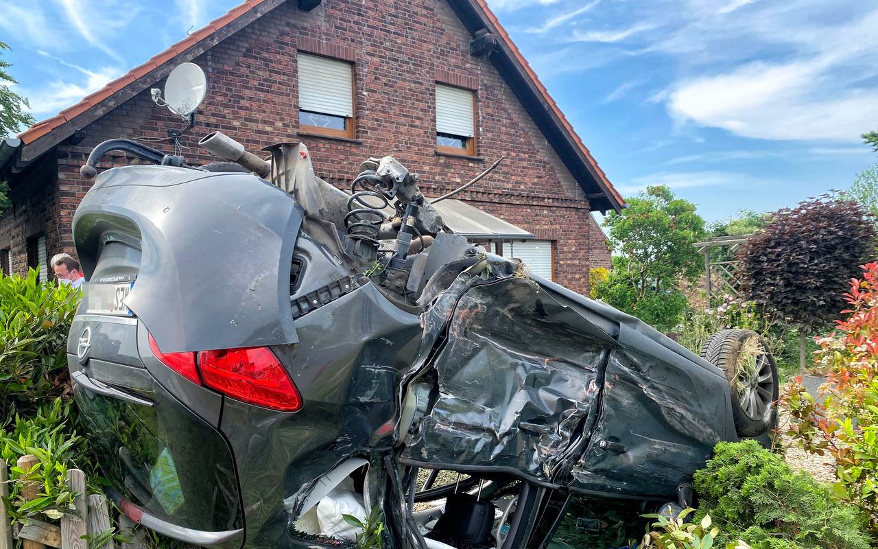 Auto in Vorgarten geschleudert