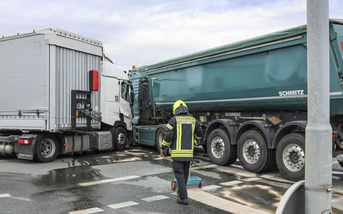 In Wesel-Lippedorf hatte es am Morgen gekracht. Zwei LKW waren zusammengeprallt. Verletzt wurde niemand. Die Aufräumarbeiten zogen sich aber über Stunden.