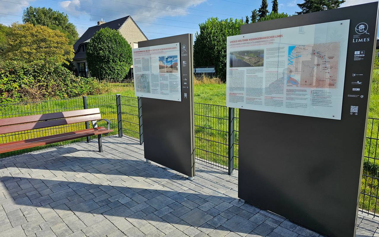 In Moers-Asberg haben die Römer vor rund zweitausend Jahren ihre Grenze überwacht - den "Niedergermanischen Limes". Vom Kastell "Asciburgium" ist über der Erde zwar nichts mehr zu sehen. Es hatte damals nur rund 100 Jahre Bestand. Die Stadt Moers hat aber jetzt einen Ort geschaffen, der an die Geschichte des UNESCO-Welterbes erinnert. Errichtet wurde an dem Bodendenkmal ein gepflasterter Platz mit modernen Infotafeln und großer Bank.