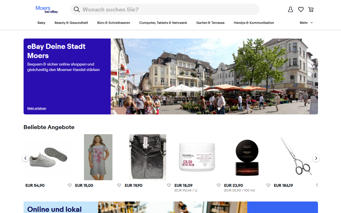 Die Wirtschaftsförderung Moers hatte sich um den digitalen Marktplatz bemüht und nimmt damit mit dem lokalen Einzelhandel an einer Art Modellprojekt bei eBay teil. Neben einer Auswahl an Produkten aus Moers soll es auch Infos über Veranstaltungen und der Stadt selbst geben. Moers‘ Bürgermeister Christoph Fleischhauer hofft durch das Projekt auf mehr Bewusstsein für den stationären Einzelhandel.