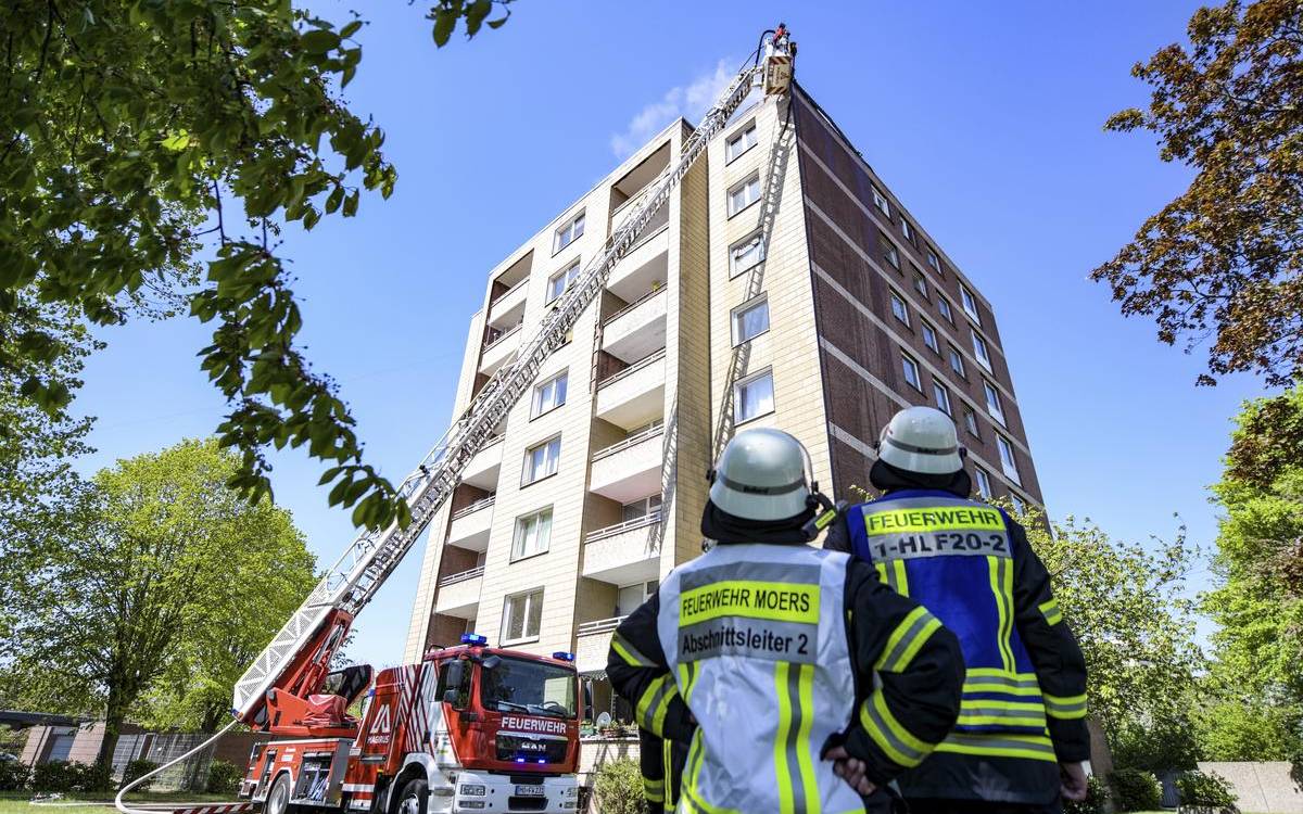 Ein Brand in Moers hat die Feuerwehr bis in die Nacht beschäftigt. Auf dem Dach eines Hochhauses an der Römerstraße war am Dienstagmittag ein Feuer ausgebrochen. Gegen halb 5 heute Morgen hat die Feuerwehr bei einer Begehung keine weiteren Brandherde gefunden. Bei dem Einsatz erlitt ein Polizist eine leichte Rauchgasvergiftung und kam ins Krankenhaus. Von den knapp 130 Bewohnern des Hauses wurde niemand verletzt. Sie sind in einer Notunterkunft an der Filder Straße untergekommen. Auf dem Dach des Hauses liefen Bauarbeiten - ob die etwas mit dem Brand zu tun haben, müssen jetzt Gutachter klären. Das Haus ist bis auf Weiteres unbewohnbar.