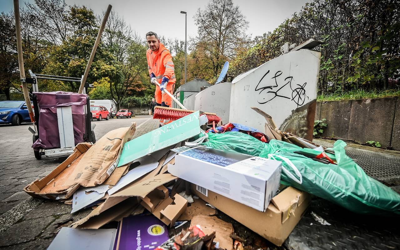 Wild entsorgter Müll sorgt bei unseren Entsorgern für Millionenschäden, wie unsere Recherche weiter zeigt. Rund 800.000 Euro hat allein die Mülheimer Entsorgungsgesellschaft im Jahr 2023 für den Abtransport des Mülls blechen müssen, sagt uns eine Sprecherin auf Anfrage. In Gelsenkirchen rechnet der Entsorger Gelsendienste sogar mit Kosten von rund 1,5 Millionen Euro pro Jahr. In Moers hat sich zumindest die Kostensituation in den vergangenen Jahren etwas entspannt – rund 250.000 Euro musste die Enni 2023 ausgeben. Die geringeren Kosten hätten vor allem mit gesunkenen Entsorgungskosten in der Müllverbrennungsanlage zu tun.