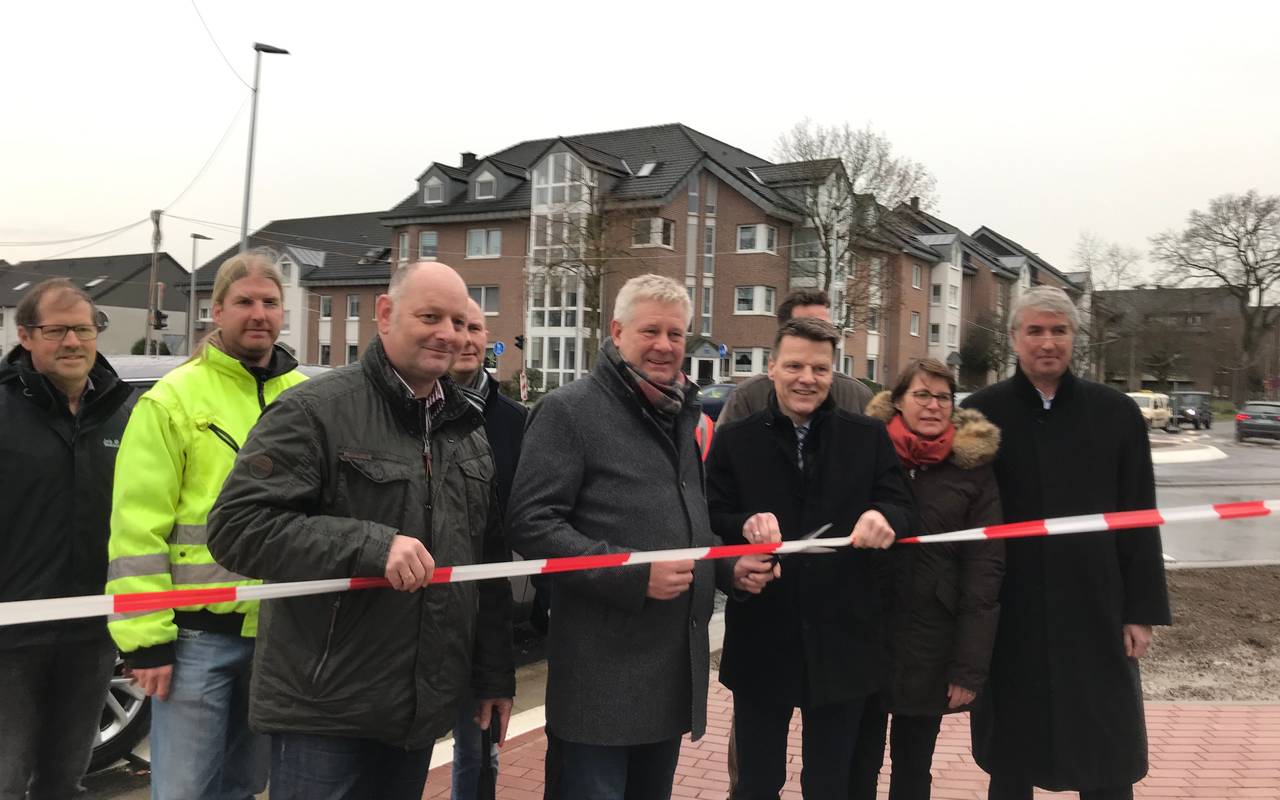 Anwohner, Verkehrsteilnehmer und Gewerbetreibende in Voerde atmen auf. Der neue Kreisverkehr an der Steinstraße ist seit gestern Abend freigegeben. Damit sind die Umbaumaßnahmen an der Dinslakener Straße abgeschlossen. Mehr als ein Jahr lang ist die Straße bis nach Voerde-Möllen saniert worden. Kostenpunkt: 4,6 Millionen Euro. Heute Mittag haben Vertreter vom Kreis und der Stadt den neuen Kreisverkehr noch einmal symbolisch freigegeben. Im Frühjar sollen da noch Stauden gepflanzt werden.